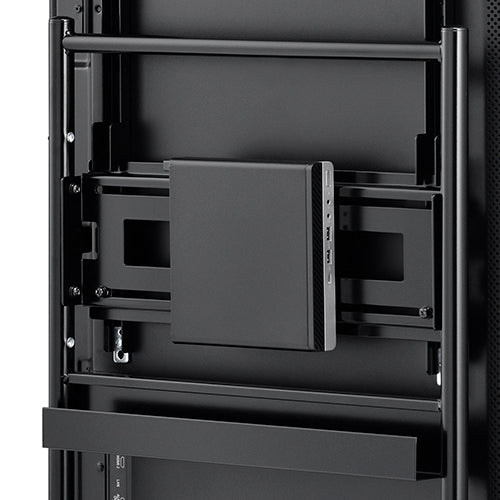 スリットを利用して100×100mmネジ穴対応の機器が設置可能。